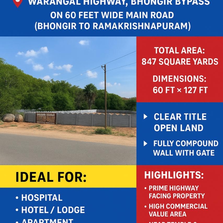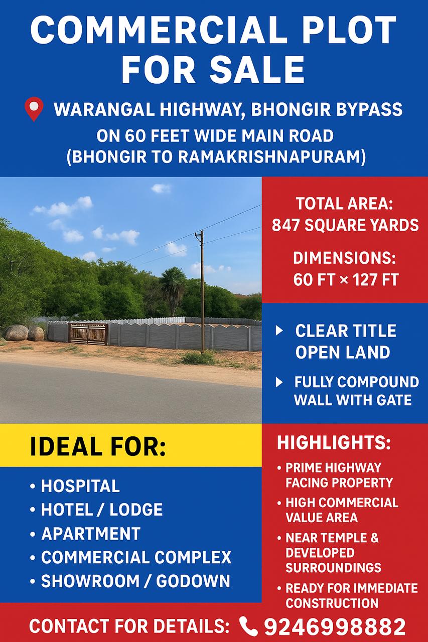 📍 BHONGIR TOWN – PRIME LOCATION PLOT FOR SALE (Full LRS Paid)