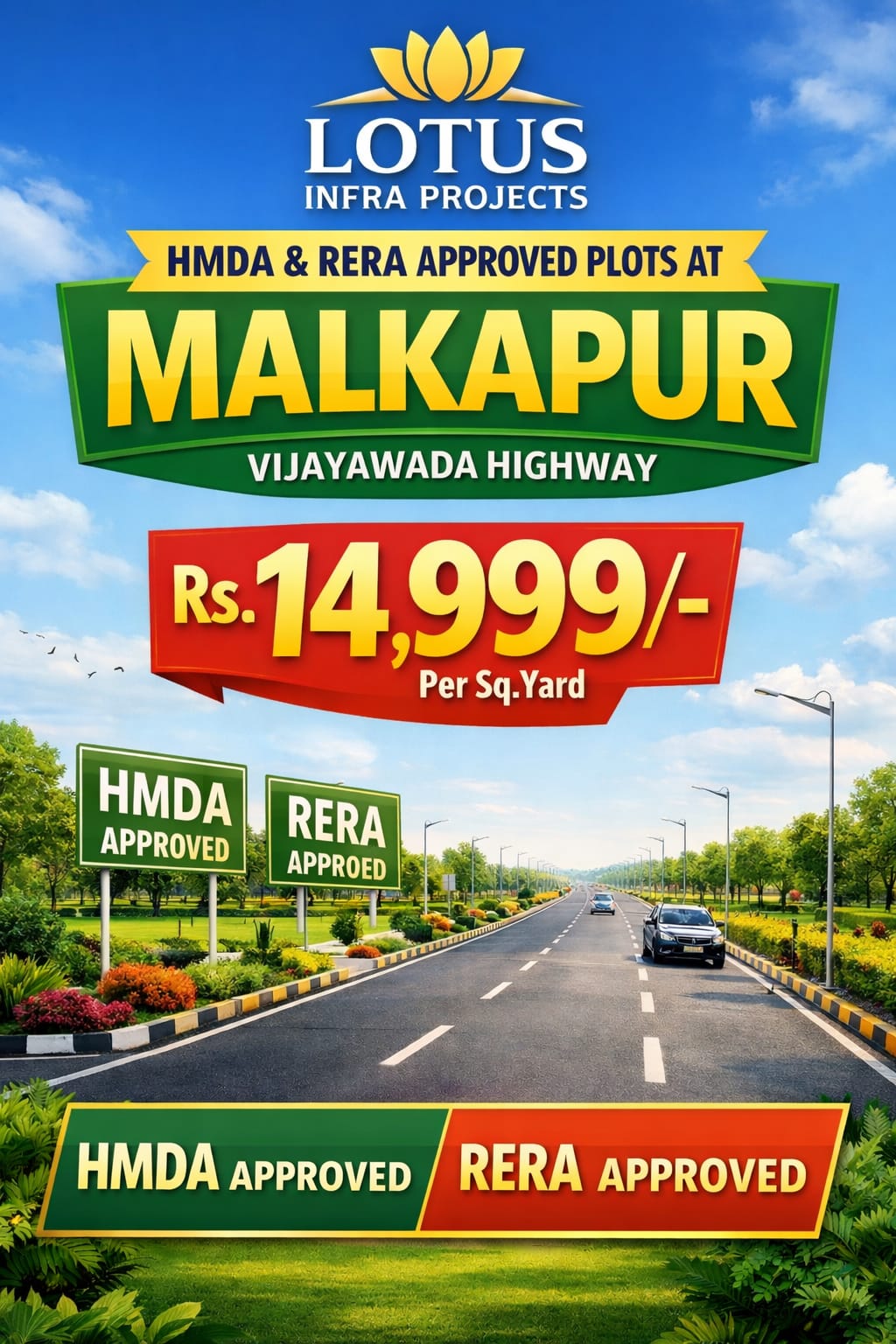 🏗️HMDA & RERA Approved Premium Plots at Malkapur, Hyderabad to Vijayawada Highway.