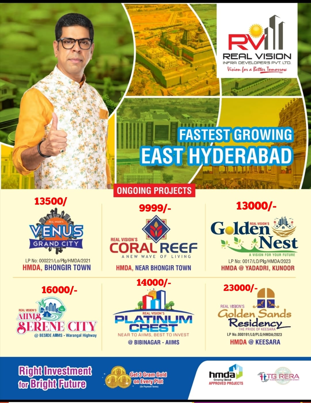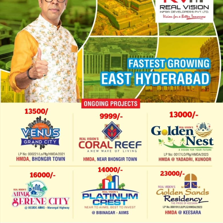 5 Mins from Raigiri Railway Station (Proposed MMTS & Metro)