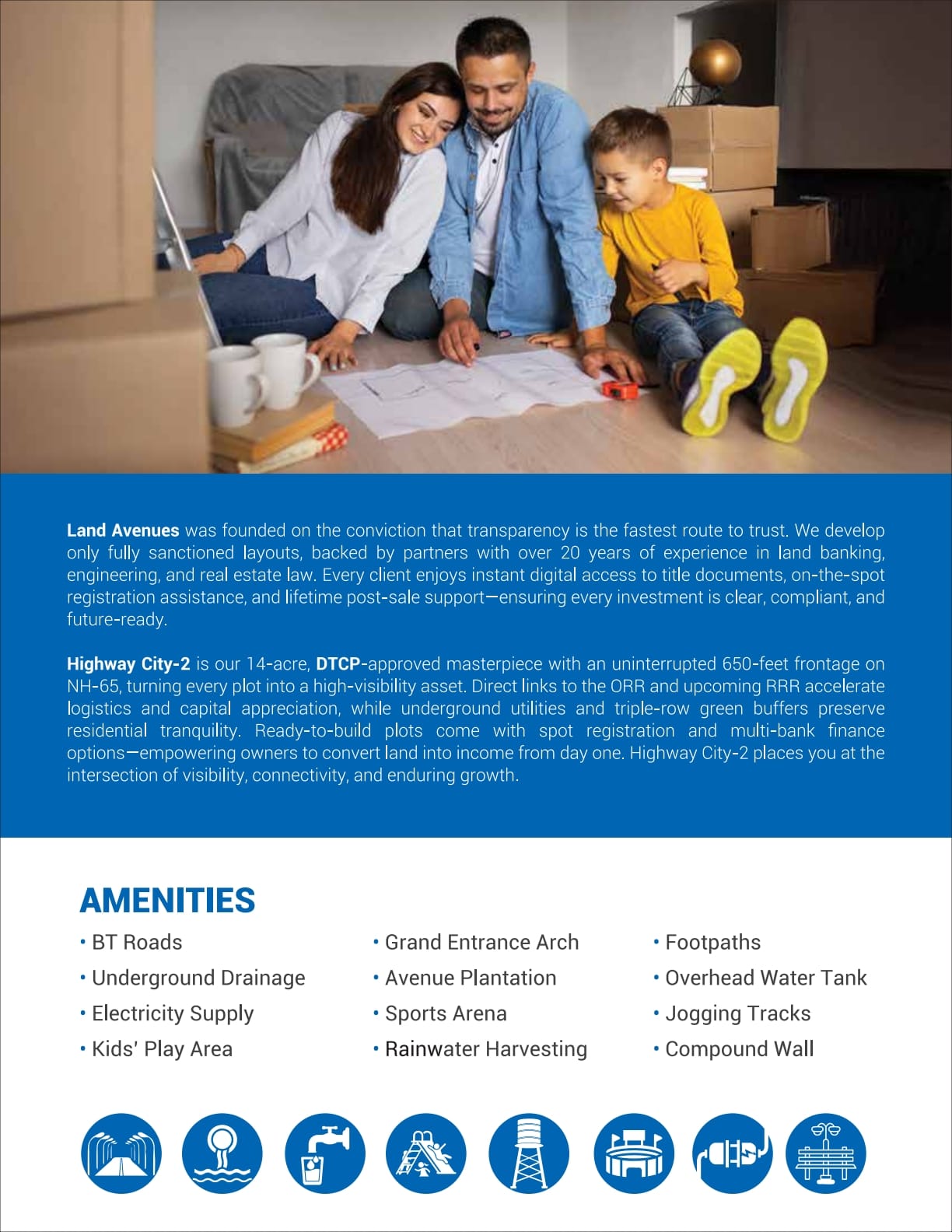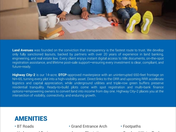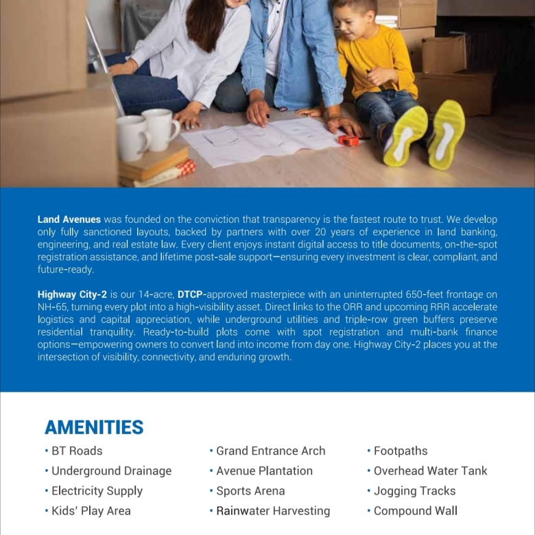 Land Avenues brings you premium plotted development on the Hyderabad–Vijayawada National Highway, backed by 20+ years of trust and transparency.