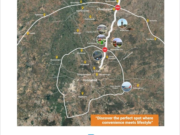 📍 Strategically located near RRR, Dry Port & Ramoji