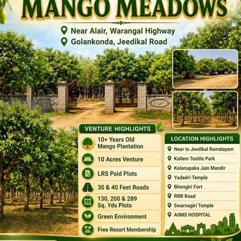 Experience the perfect blend of nature, investment, and future growth at Suraksha Mango Meadows — a thoughtfully planned mango farm plotting project located in a rapidly developing corridor.