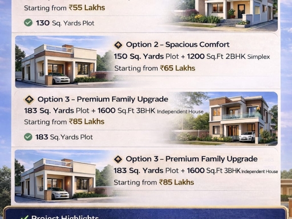 🔹 Option 3: 183 Sq. Yards + 1600 SFT 3BHK Independent House – Rs 85 Lakhs