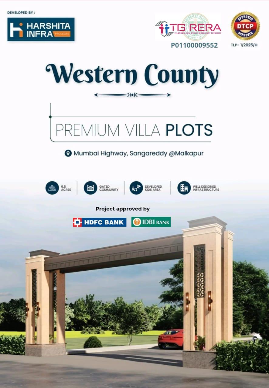 Own your dream villa plot in a premium gated community at one of the fastest-growing locations near Hyderabad. Western County offers ready-to-construct plots with modern approvals, excellent connectivity, and strong future appreciation potential.